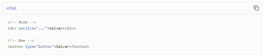 <button>,<a>,<input>) para garantir compatibilidade com leitores de tela e navegação via teclado.Evite substituir por
