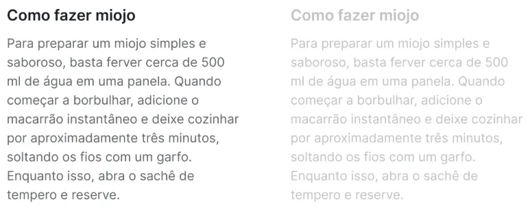 Cores com baixo contraste exigem mais esforço mental para leitura. Quanto maior o contraste, mais rápida e fluida é a leitura, especialmente para pessoas com dislexia, TDAH ou cansaço visual.