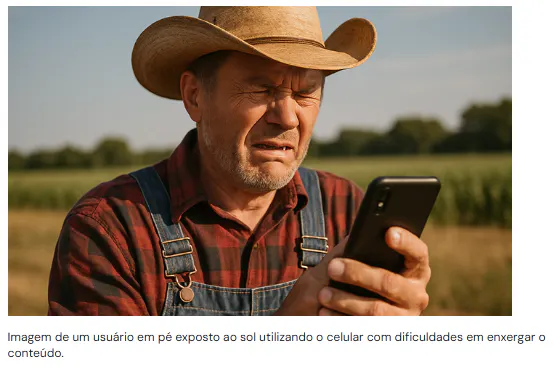 Usuários podem acessar o produto sob sol forte, em telas com brilho baixo ou de qualidade inferior. O contraste adequado garante legibilidade mesmo fora do “cenário ideal” de design.