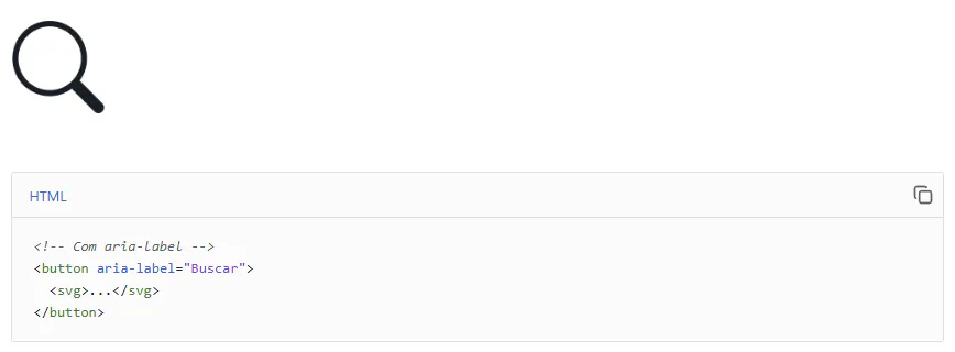 aria-labelUm ícone de lupa pode ser intuitivo para quem enxerga, mas para um leitor de tela é apenas um “SVG sem nome”.
